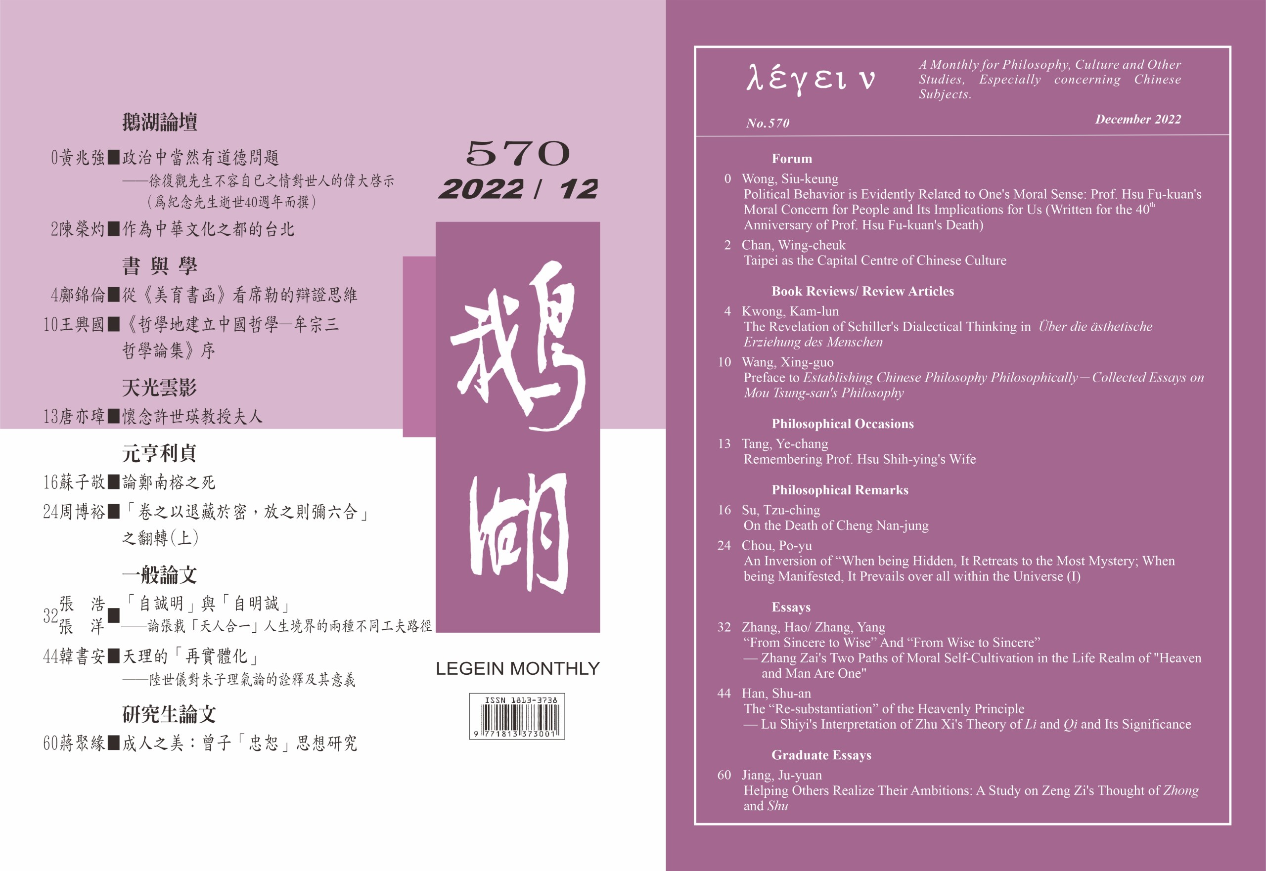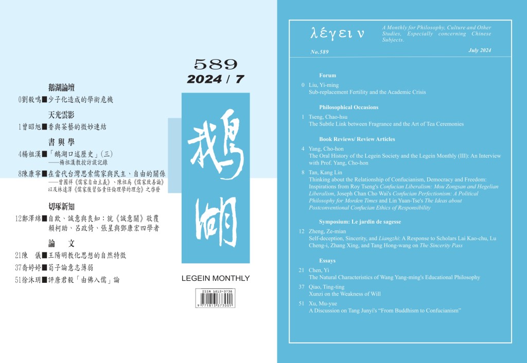 | 9 | 實體的分叉:在「天人合一」與「人禽之辨」中的牟宗三「道德的形而上學」-從盛珂《道德與存在:心學傳統的存在論闡釋》談起The Forking Paths of Substance: Mou Zongsan’s "Moral Metaphysics" between "The Unity of Heaven and Man" and "The Distinction between Man and Birds"-Some Thoughts from Sheng Ke’s Moral and Being: An Ontological Interpretation of the School of the Heart-mind