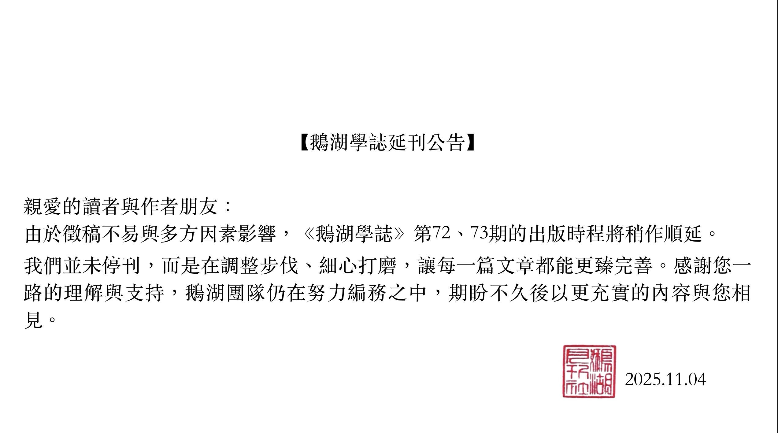【鵝湖學誌延刊公告】4 11 月, 2025