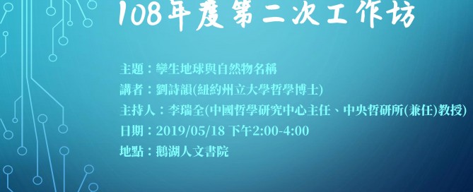 108年度第五次工作坊:內聖外王的重整與貫徹──論朱熹哲學思想與道德事功之學的聯繫